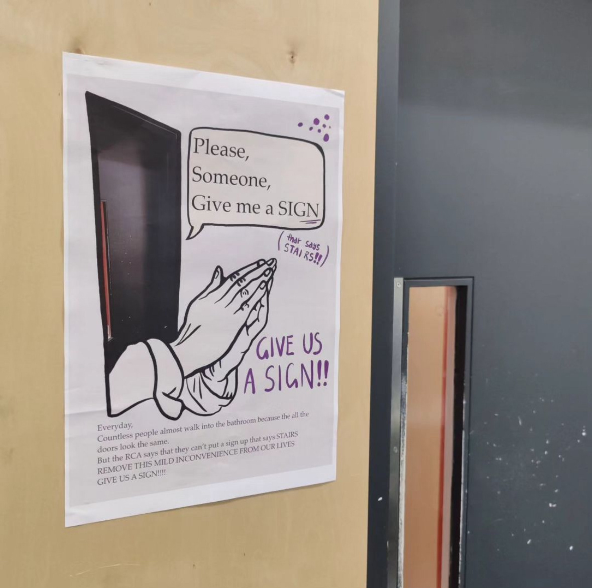 This is an article from the Dodo, the Royal College of Art's Student Newspaper. It chronicles a project I conducted over November 2023 where I challenged institutional barriers through site-specific interventions (that's artspeak for "I kept putting up signs on a door to annoy the school into changing their rules").